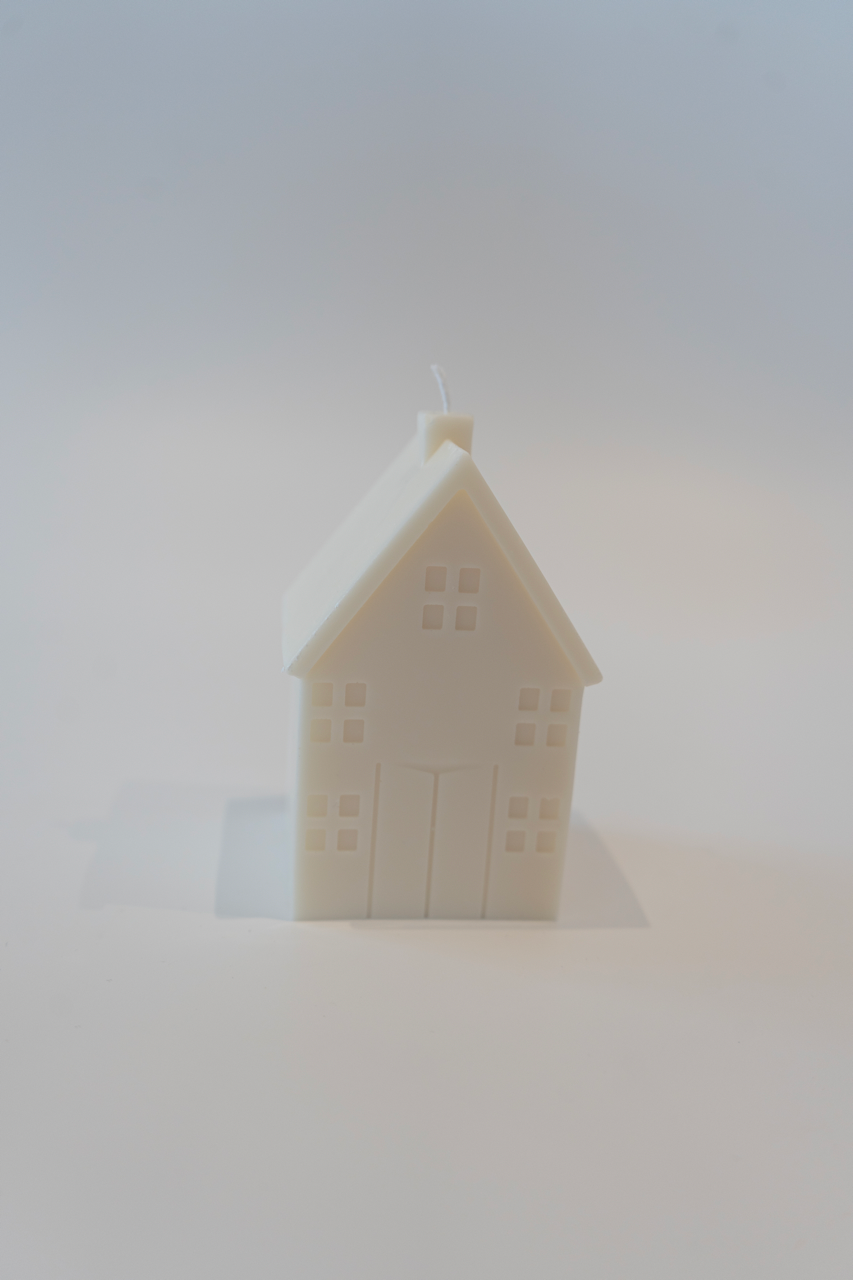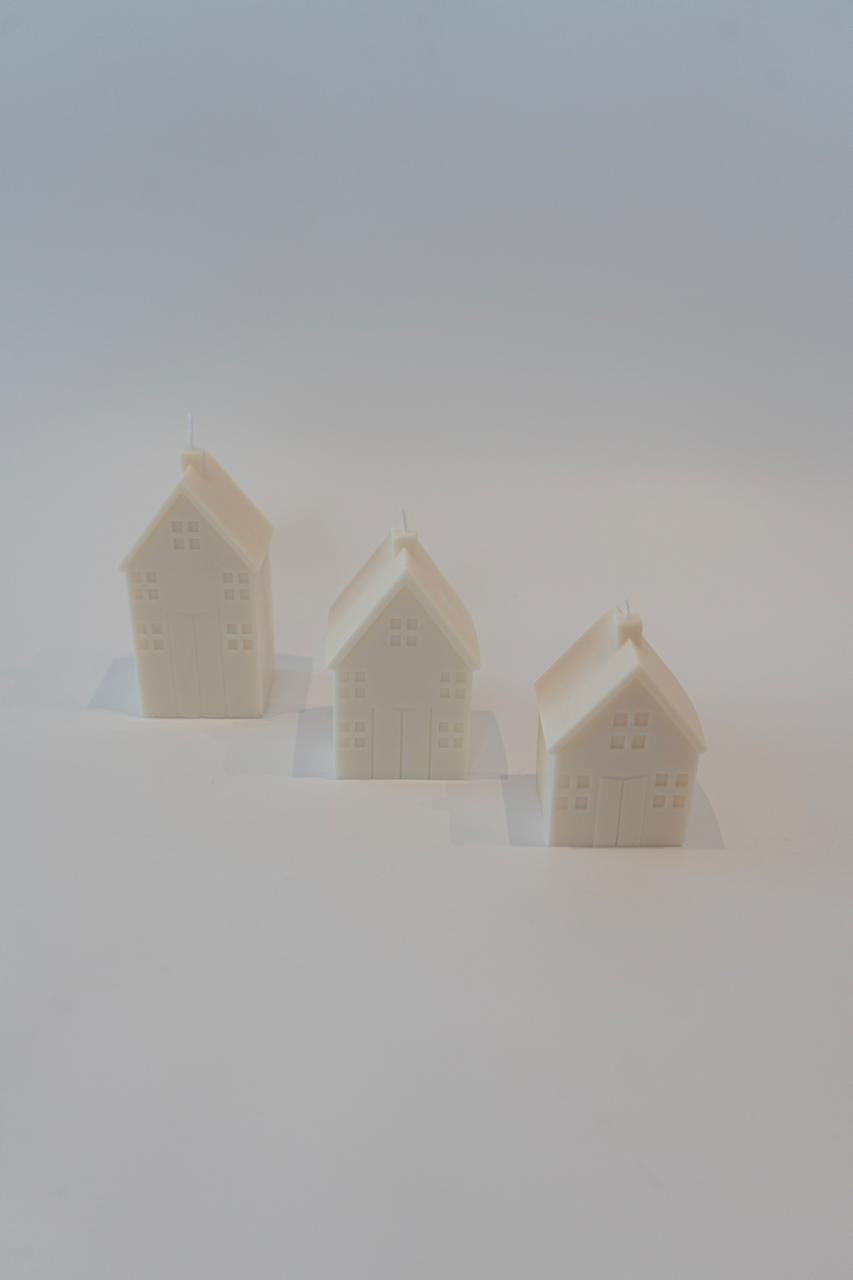 Svečka v obliki hišice v treh različnih velikostih.