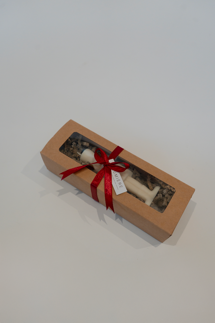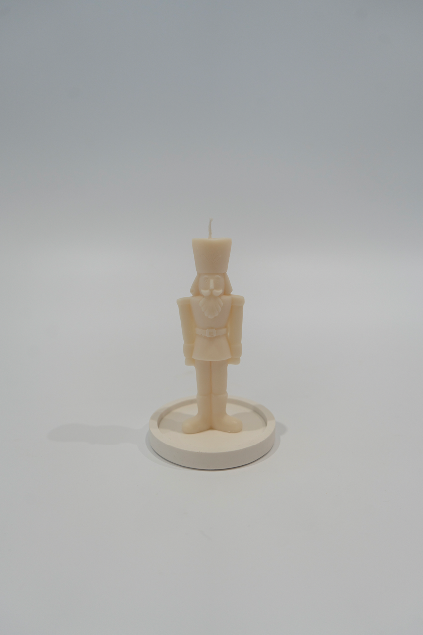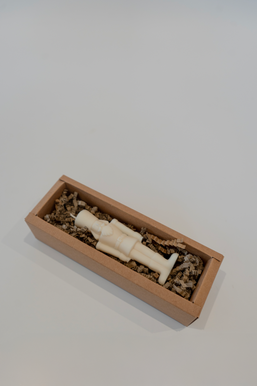 Svečka iz naravnega sojinega vsoka v obliki božičnega hrestača v velikosti 11,5 cm.