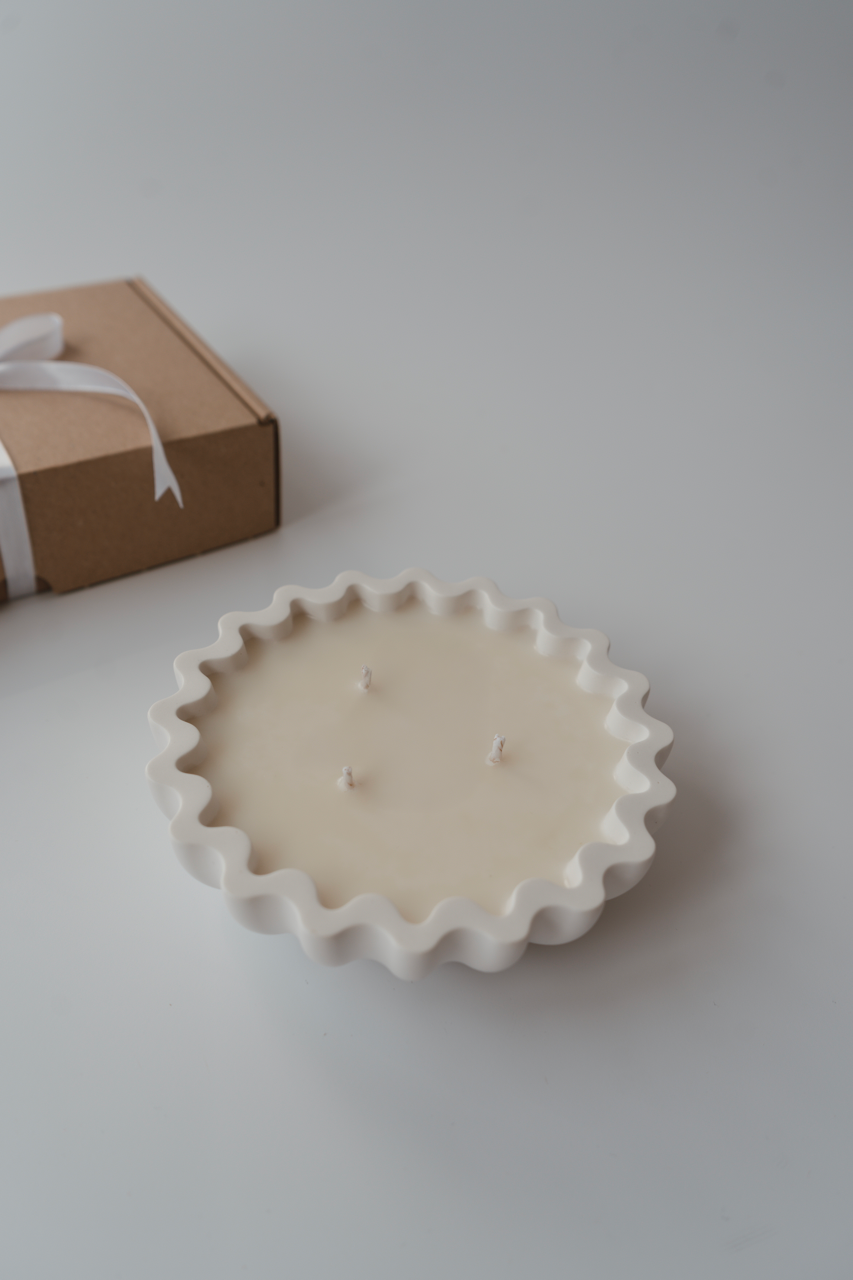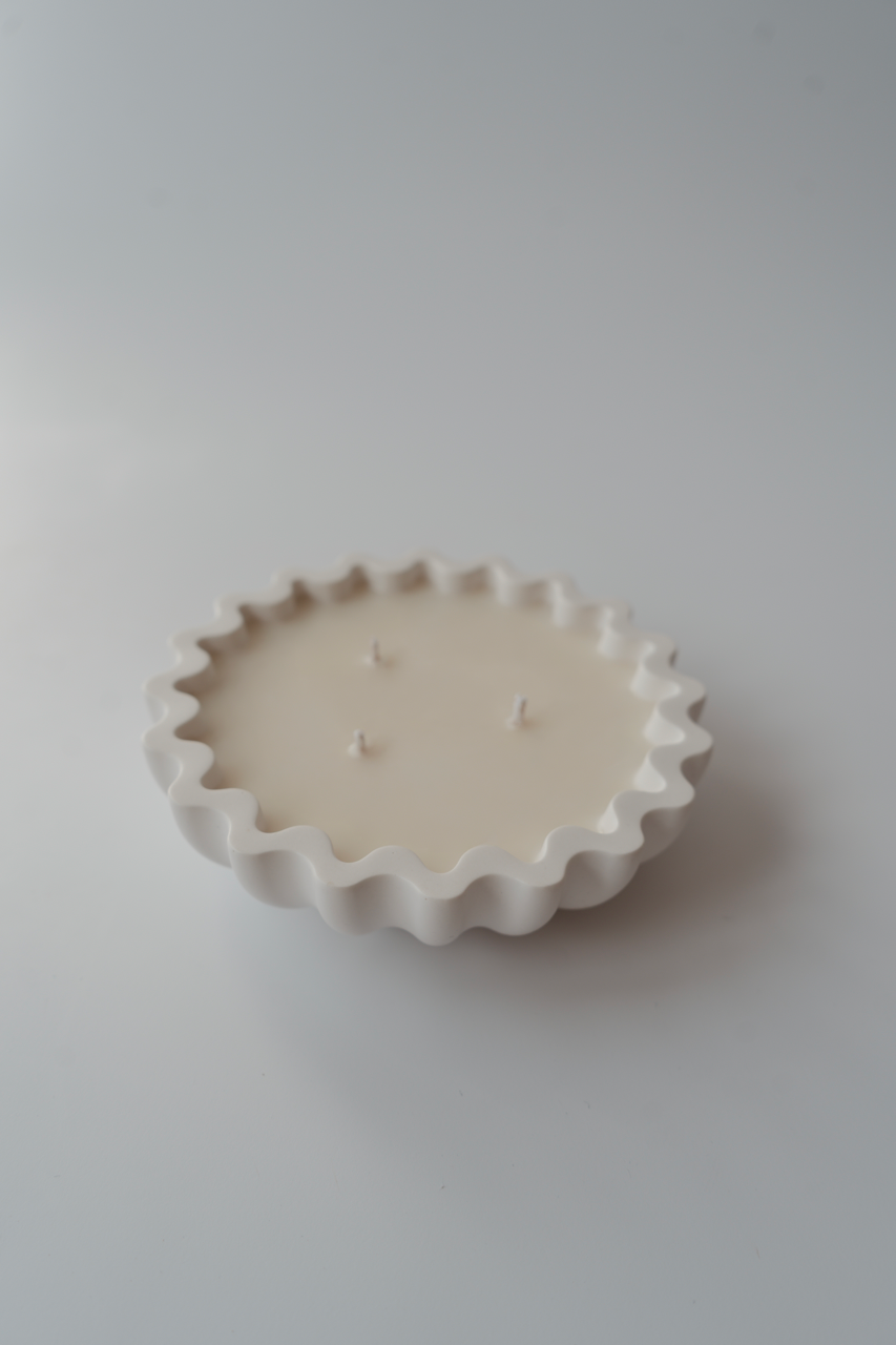 Izdelek je v celoti ročno delo, posoda je izdelana iz keramične mase in skrbno obdelana. Vsebuje 250g naravnega sojinega voska in tri bombažne stenje.